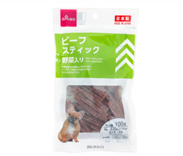 | 原材料 | 肉類(鶏肉、鶏ササミ)、小麦粉、酵母エキス、チキンエキス、にんじん、ほうれん草、ソルビトール、タピオカ澱粉、グリセリン、リン酸塩(Na)、カゼインNa、保存料(ソルビン酸K)、着色料(β-カロテン、赤106号、青1号) |